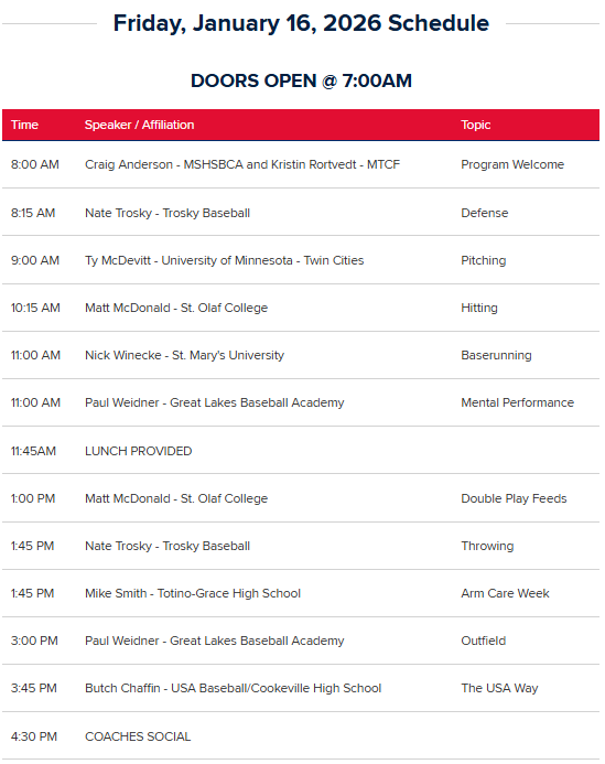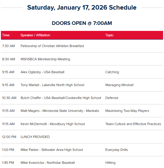 2026 Twins Baseball Coaches Clinic, In Partnership with MSHSBCA Baseball